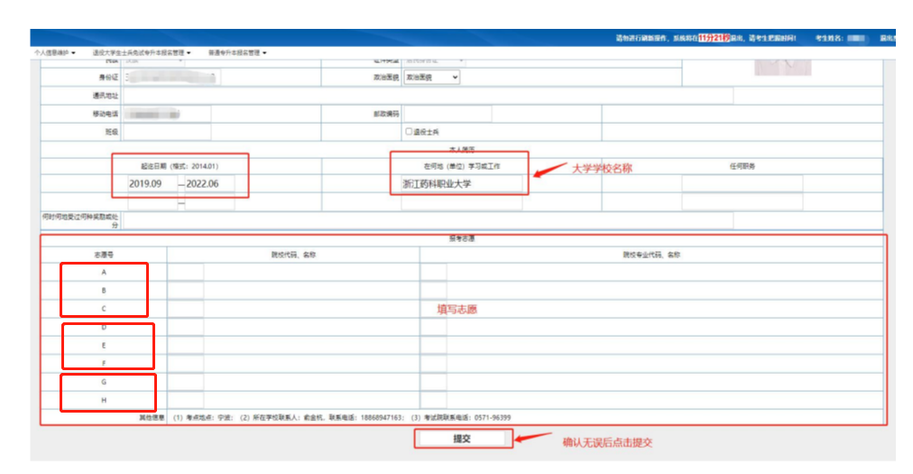 注: 符合条件的退役大学生士兵可兼报“普通专升本”和“免试专升本”进入相应的报名入口分别报名。