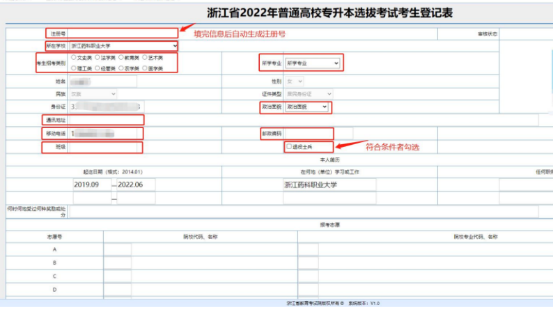 须我省户籍、在高职高专毕业当年应征入伍且在退役后1年内报考) : 请选择浙江