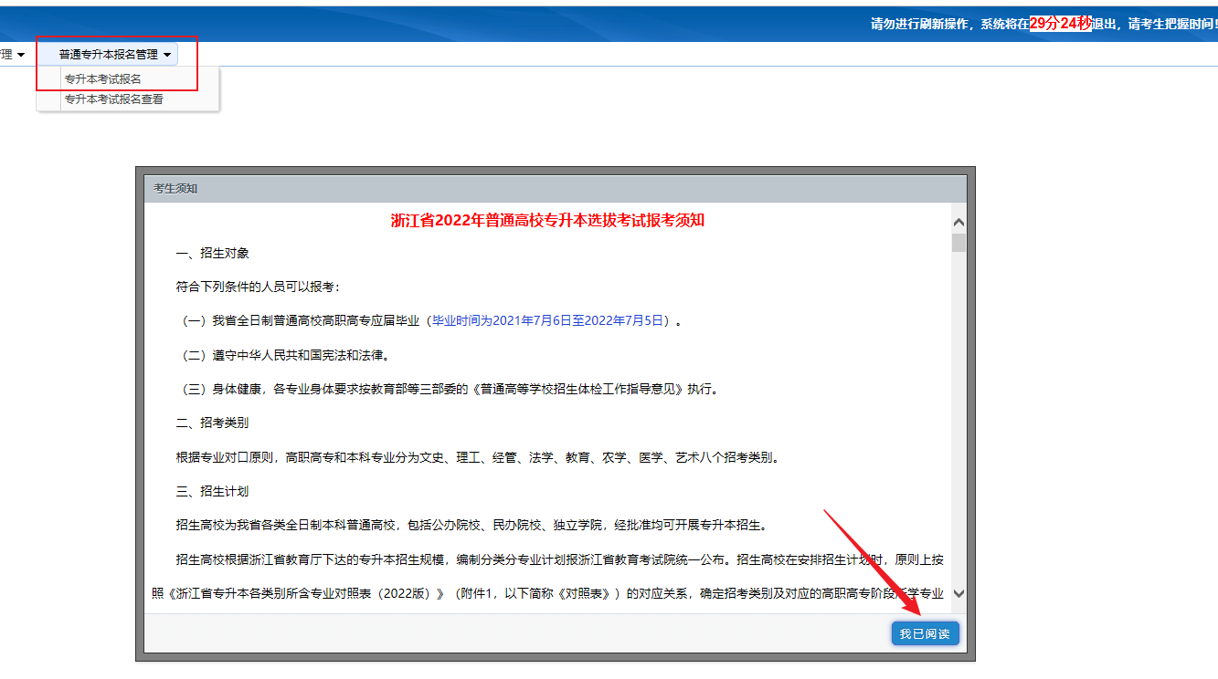 6.进入系统进行专升本报名,点击阅读《考生须知》以及《诚信承诺书》