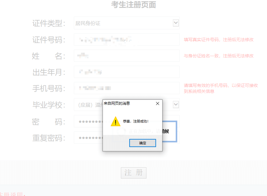 注册后考生的“身份证号、姓名、所在学校”信息将与“高校学籍系统中毕业学生学籍信息”进行严格匹配,匹配不成功的不能报名;退役士兵考生,注册时务必勾选“退役士兵”选项。