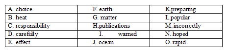 through carefully before making your choices. Please blacken the corresponding letter for each choice on The Answer Sheet. You may not use any of the words in the word bank more than once. (10 points)
