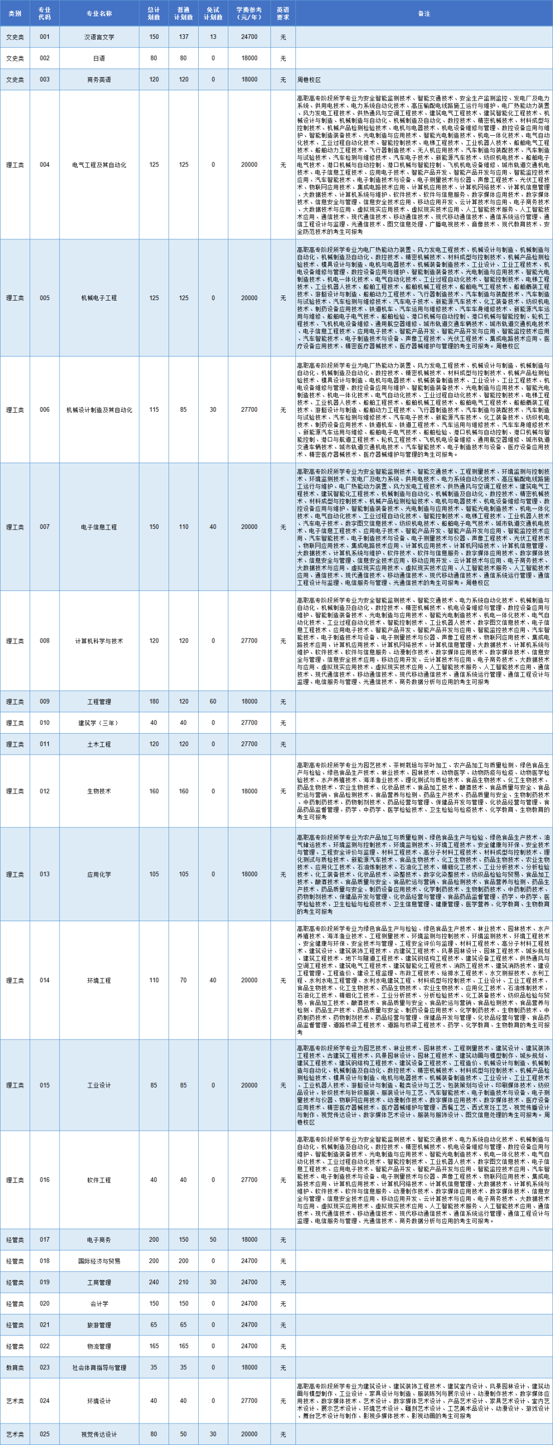 2023年学校专升本普通类根据专业对口原则在文史、理工、经管、教育、艺术五个招考类别里设置25个专业招生,共计划招生2707名,其中理工类的软件工程专业、教育类的社会体育指导与管理为今年新增专业,分专业招生计划见下表: