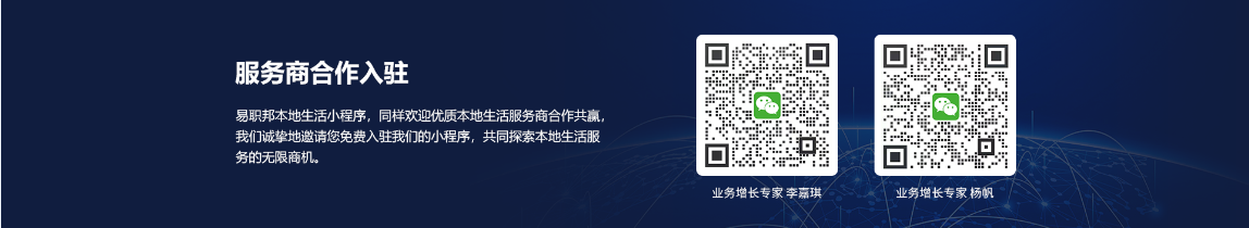 易职邦同样欢迎本地生活服务商与其他行业有志伙伴入驻加盟我们!