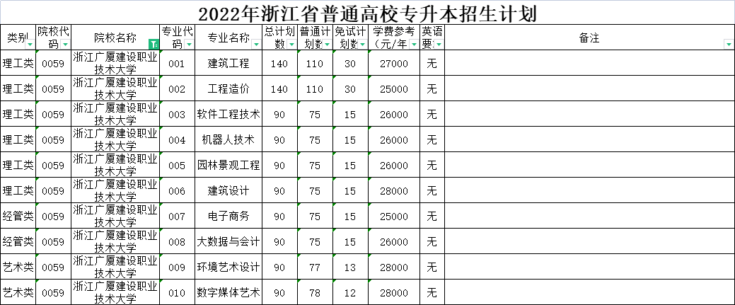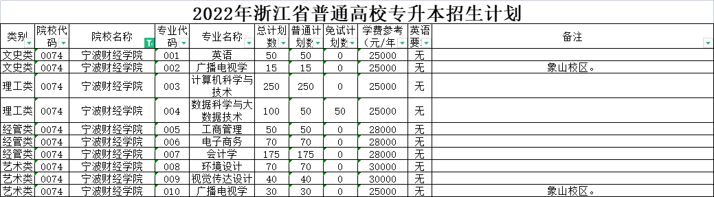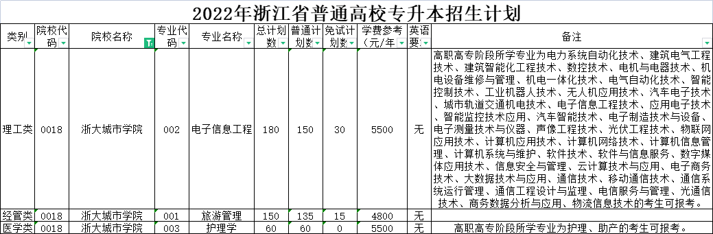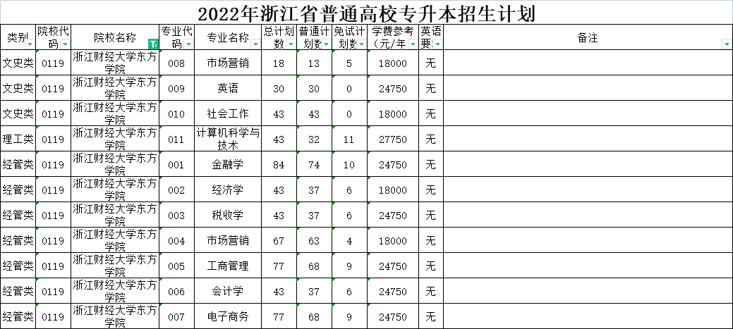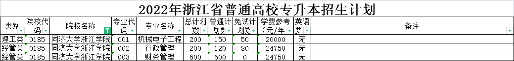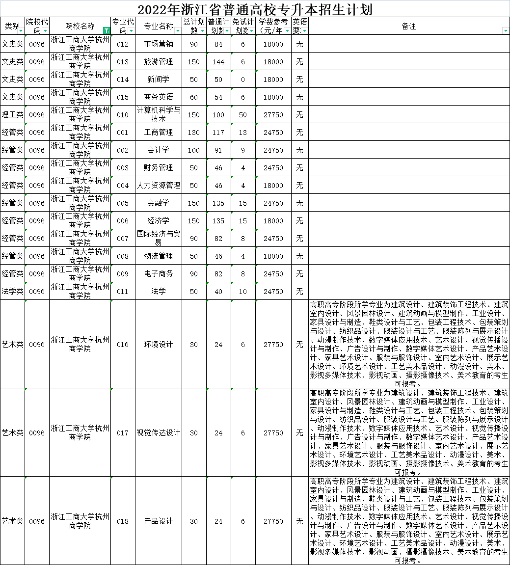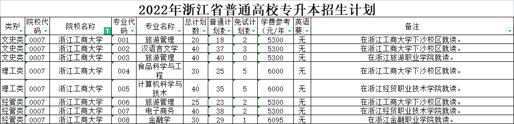 | 经管类 | 0006 | 杭州电子科技大学 | 007 | 电子商务 | 50 | 50 | 0 | 5300 | 无 | 在浙江商业职业技术学院就读。 |