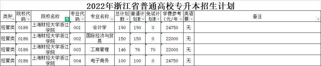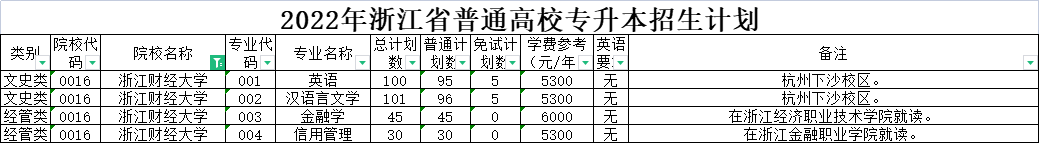 | 经管类 | 0020 | 杭州师范大学 | 006 | 经济学 | 90 | 90 | 0 | 5300 | 无 | 高职高专阶段所学专业为金融管理、国际金融、证券与期货、保险、投资与理财、互联网金融、国际经济与贸易的考生可报考。下沙校区就读。 |