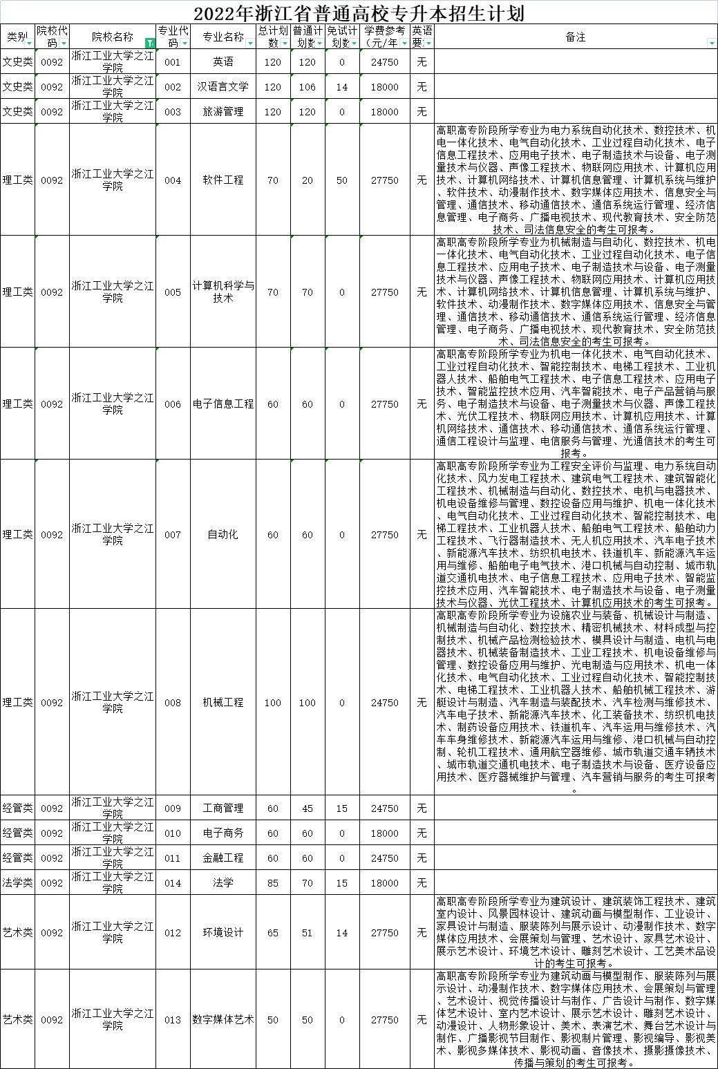 | 文史类 | 0095 | 杭州电子科技大学信息工程学院 | 001 | 英语 | 80 | 80 | 0 | 18000 | 无 | |