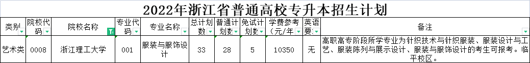 | 艺术类 | 0006 | 杭州电子科技大学 | 001 | 产品设计 | 40 | 40 | 0 | 9000 | 无 | 高职高专阶段所学专业为建筑设计、建筑装饰工程技术、建筑室内设计、风景园林设计、建筑动画与模型制作、工业设计、家具设计与制造、鞋类设计与工艺、包装策划与设计、服装陈列与展示设计、动漫制作技术、数字媒体应用技术、会展策划与管理、艺术设计、视觉传播设计与制作、广告设计与制作、数字媒体艺术设计、产品艺术设计、家具艺术设计、服装与服饰设计、室内艺术设计、展示艺术设计、环境艺术设计、雕刻艺术设计、工艺美术品设计、动漫设计、人物形象设计、美容美体艺术、美术、舞台艺术设计与制作、影视美术、影视多媒体技术、影视动画、美术教育的考生可报考。在杭州电子科技大学下沙校区就读。 |