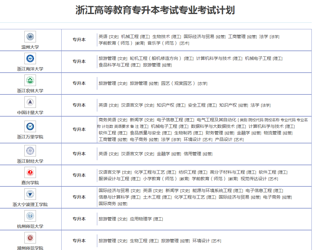 2022年浙江省专升本学校名单及专业有哪些?相信很多考生在备考2022年浙江统招专升本考试,那么都可以报考哪些院校?有哪些专业?下面给大家带来相关解答,供大家参考!