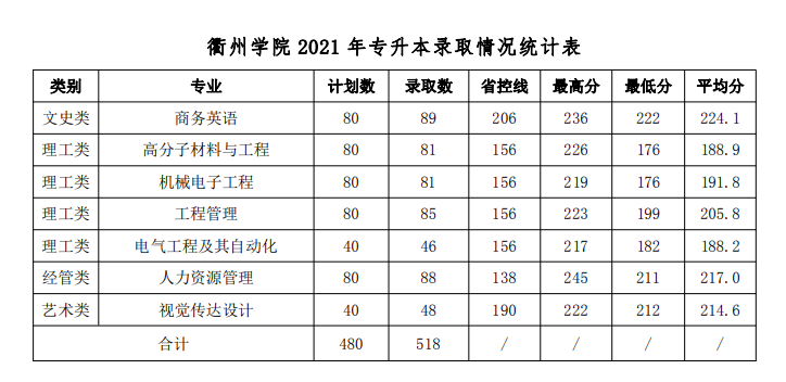 5月18日,我校2021年专升本录取工作顺利结束,共录取商务英语、高分子材料与工程、机械电子工程、工程管理、电气工程及其自动化、人力资源管理、视觉传达设计等7个专业518人,超额完成录取38人。