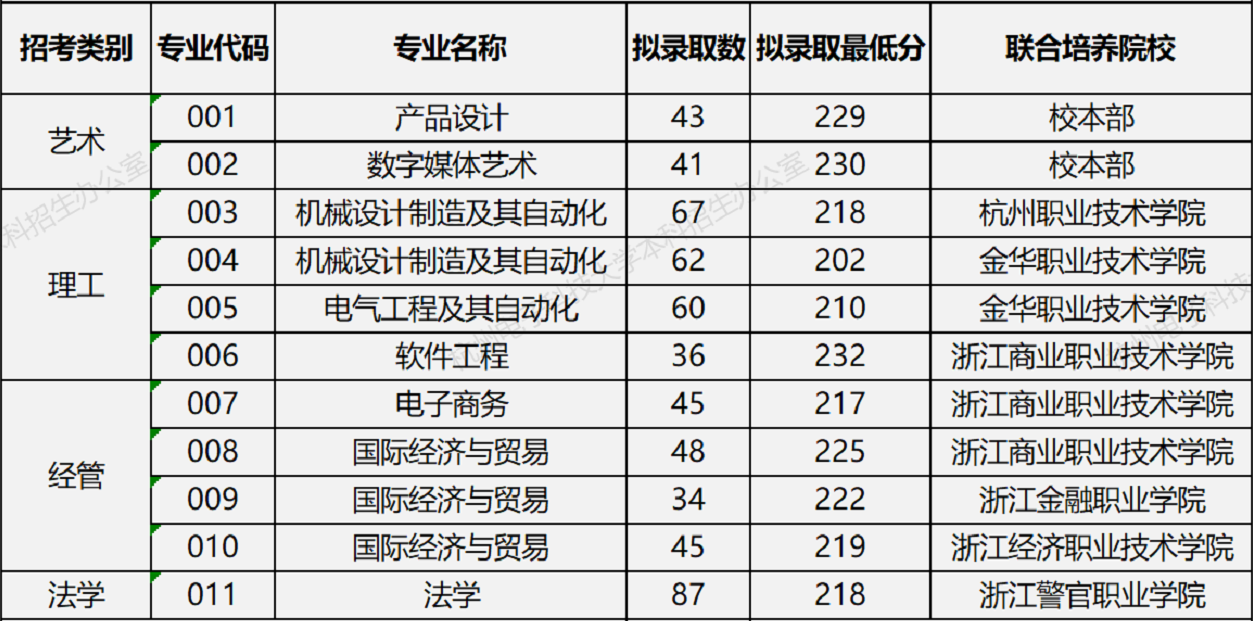 021我校“专升本”投档已经结束,现将投档结果及拟录取名单公布如下,具体录取名单请以浙江省考试院最终审核为准。 如有疑问,请致电我校本科招生办公室。