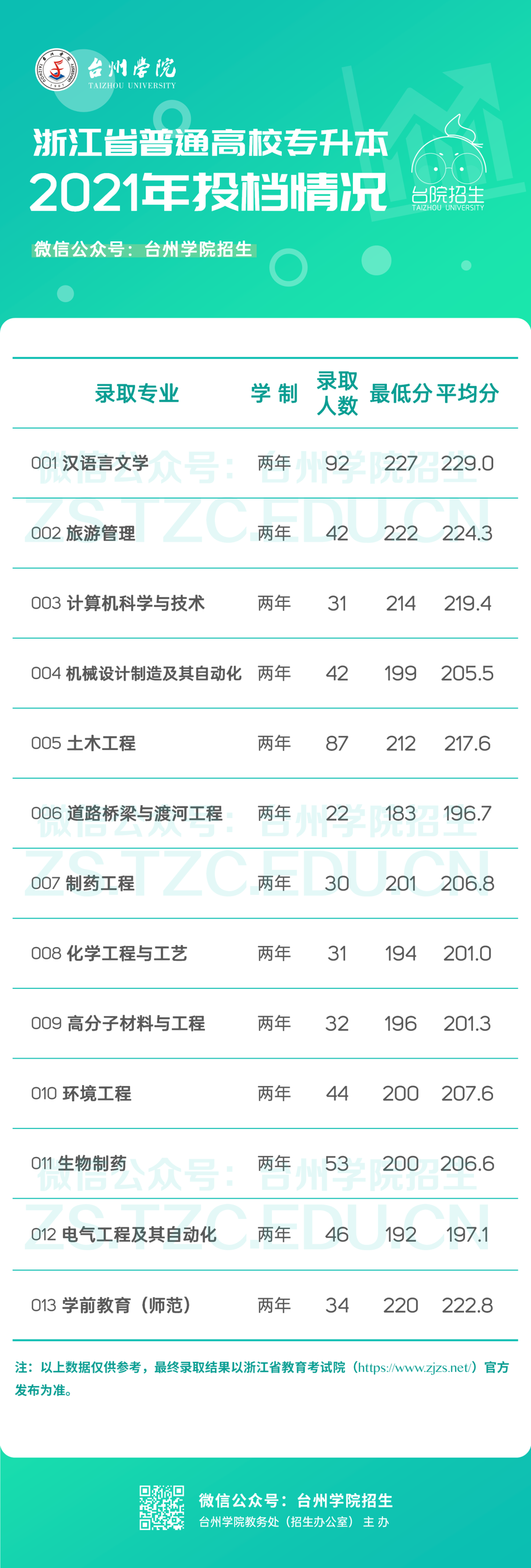 3.涉及我校浙江省2021年普通高校专升本拟录取考生后续学生档案的寄送、党团组织关系转接等相关事宜,请考生密切关注学校招生信息网(https://zs.tzc.edu.cn/)、微信公众号:台州学院招生 近阶段发布的讯息。