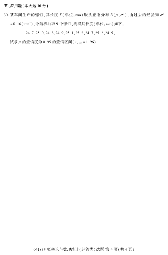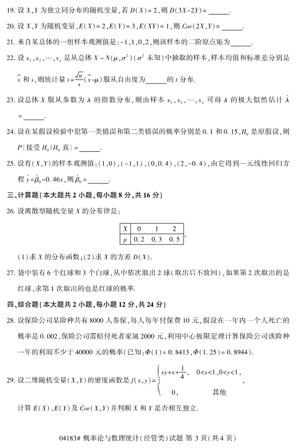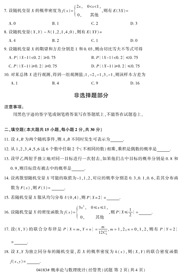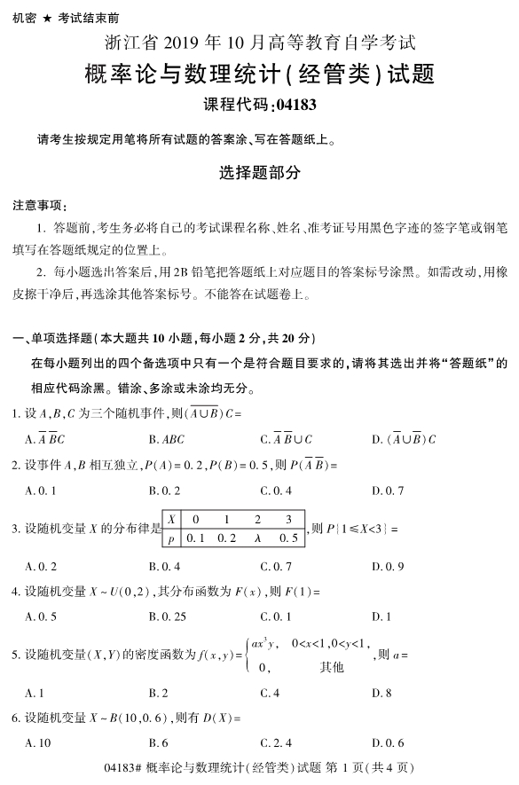 2019年已经要接近尾声了,但是对于想要报考2020年4月份浙江自考的考生们来说,现阶段考生们自考可以开始进行复习备考工作。并且在复习备考中,适当地真题训练是十分必要的,所以浙江专升本为各位考生们整理了2019年10月浙江自考04183概率论与数理统计(经管类)试题。