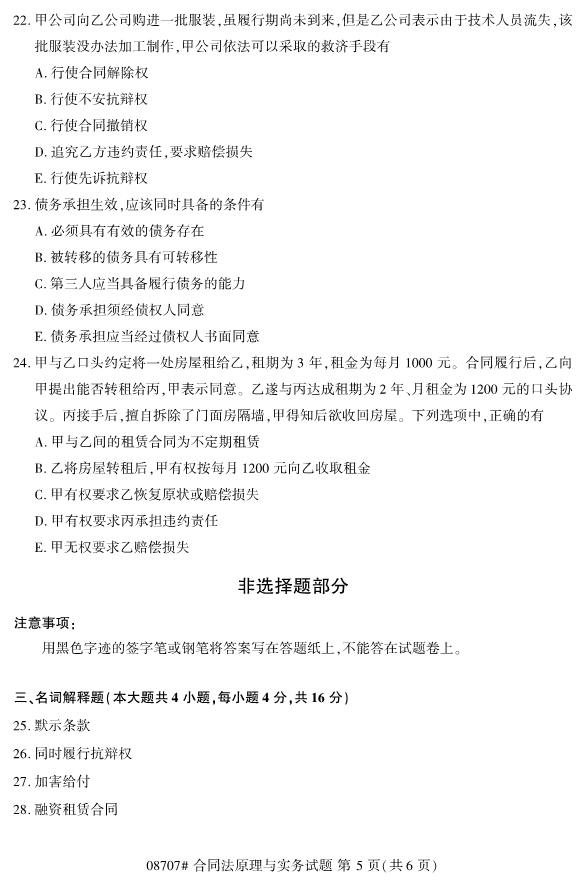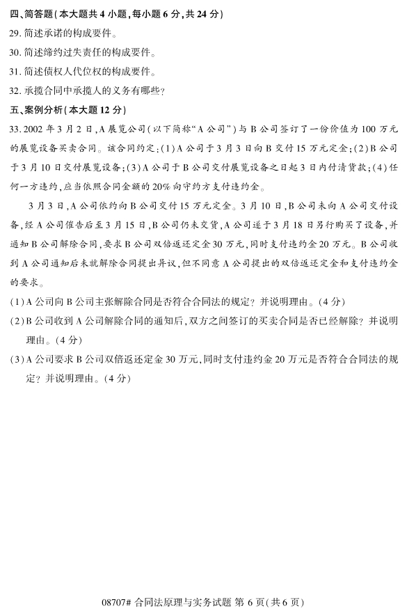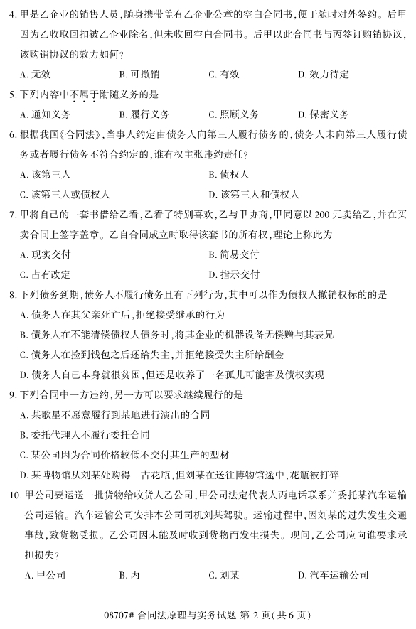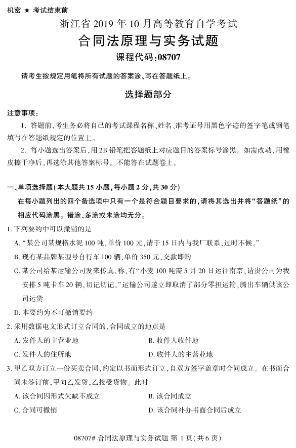 【导读】对于考生们来说,想要尽早拿到浙江自考本科毕业证书,复习备考工作当然是越早开始越好,当然在备考过程中必要的真题训练可以帮助考生们更好的掌握考试的重点。所以,浙江专升本为各位考生们整理了2019年10月浙江自考087合同法原理与实务试题。