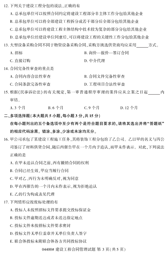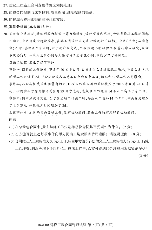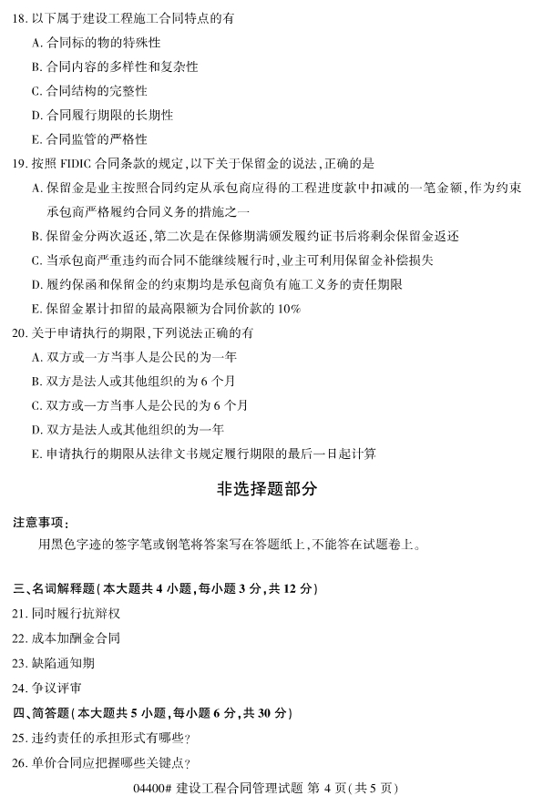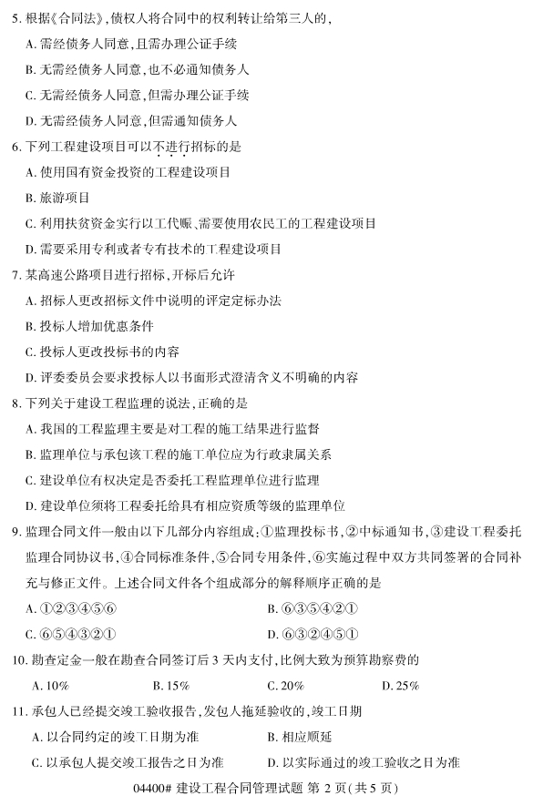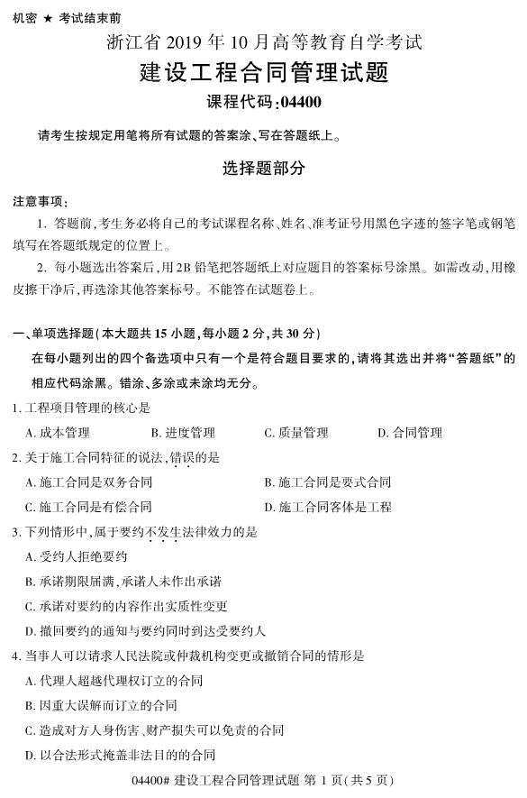 2019年已经“余额不足了”,准备报考2020年4月份浙江成人自考专升本的考生们是否已经选择好了想要报考的专业了呢?是否已经制定好了复习备考的计划了呢?为了帮助考生们备考,小编为考生们整理了2019年10月浙江自考04400建筑工程合同管理试题。