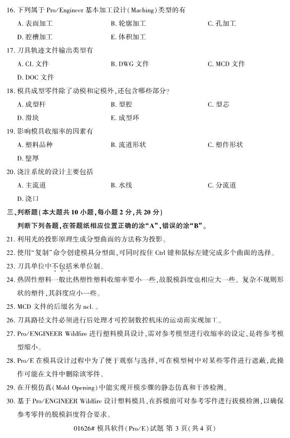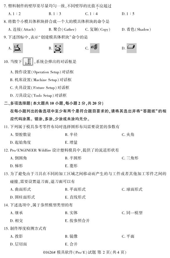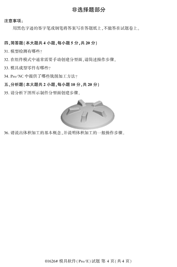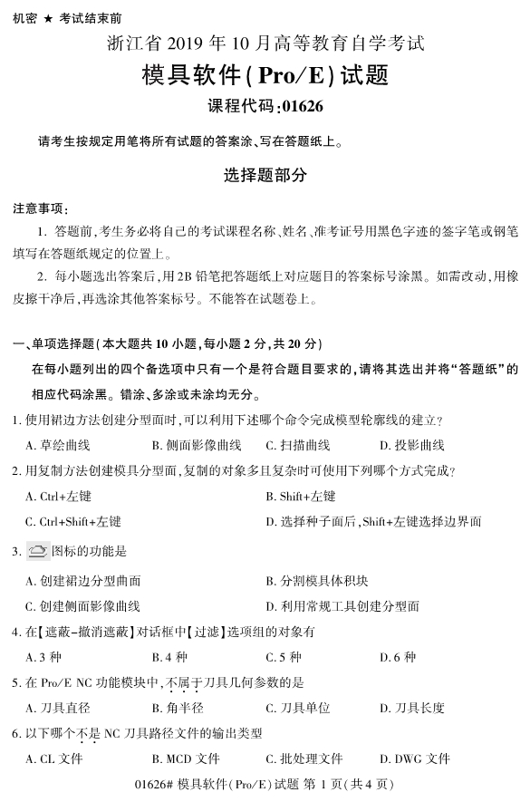 2020年4月浙江自考专升本的报名工作已经基本结束了,现阶段考生们最为重要的事情就是复习备考,为了帮助各位考生们备考,小编整理了2019年10月浙江自考专升本01626模具软件(Pro/E)试题的内容和各位考生们分享,希望对考生们有所帮助。