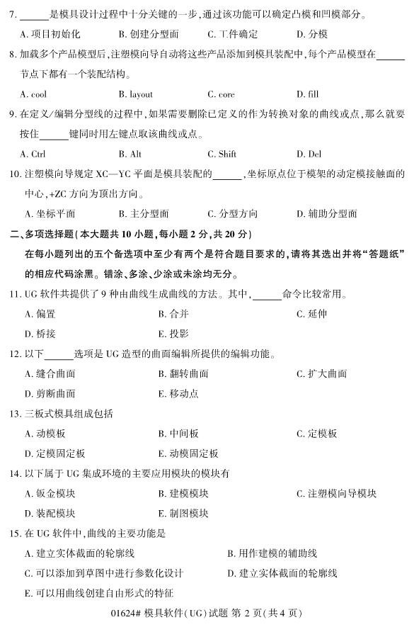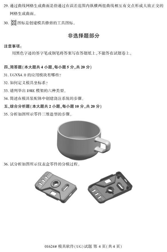 【结尾】以上就是关于2019年10月浙江自考专升本模具软件(UG)试题的全部内容,考生如果想获得更多关于浙江专升本相关资讯,如浙江专升本政策公告、统招专升本、成考专升本、自考专升本、网教专升本、专升本常见问题等相关信息,敬请关注我们浙江专升本网(http://www.jswm.com.cn/)。