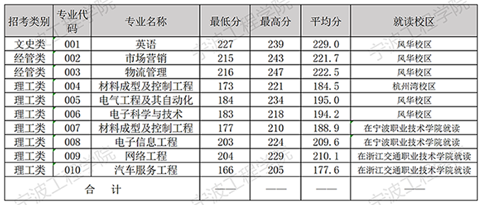 浙江专升本 >统招专升本 > 录取查询 > 宁波工程学院2021年专升本分专业录取投档线